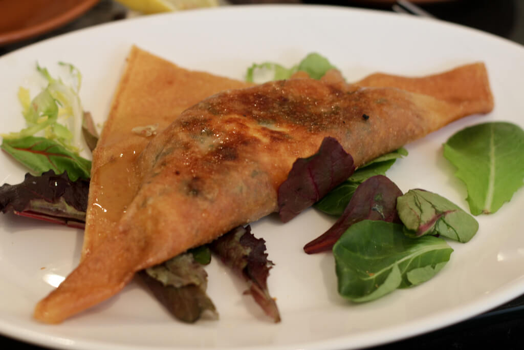 It is made of thin paper-like pastry dough (like phyllo), which is stuffed with a mixture of an egg, tuna, capers, onions, and parsley. Then it’s folded into a triangle (like samosas) and deep-fried until crisp on the outside, with a soft, runny yolk waiting inside.