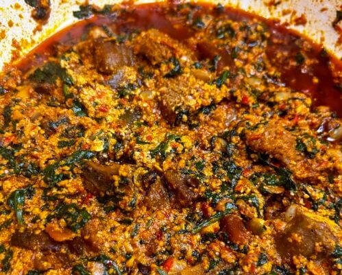 You will often see this rich soup served with swallow like pounded yam, eba, or fufu. Egusi is one of Nigeria’s most beloved dishes. It’s hearty, filling, and best enjoyed with your hands.