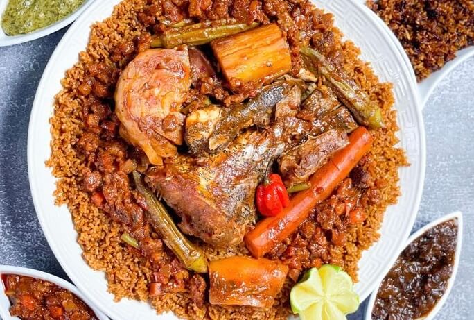 It’s often served on a large communal tray, with everyone eating from the same dish using spoons or clean hands. It’s not just food, it’s a shared experience. Thieboudienne is love on a plate.